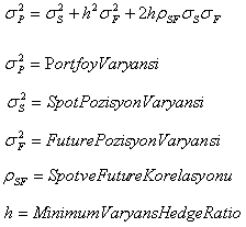 İktisat derslerinden hatırlayacağımız gibi denklemin h’ye göre birinci türevini alıp sıfıra eşitler isek, minimum variance hedge oranına ulaşmış olacağız;