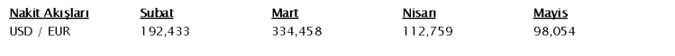 Tahsil edilecek bütçelenmiş nakit akışlar aşağıdaki tabloda gibi belirlenmiştir.