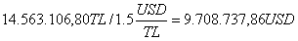 10.000.000USD*1.65TL/USD= 16.500.000 TL olacaktır.